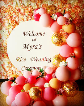 Free standing semi oval arch board at base of stairs with silk flowers LED candles and personalising